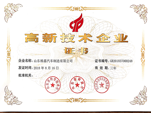 2018年公司再次被认定为国家级高新技术企业,我们将进一步加大技改投资,利用新技术、新工艺、新材料向车辆稳定化、智能化发展,为客户提供更好用、更实用、更耐久的杨嘉汽车!向创新,创造,创品牌阔步前行!