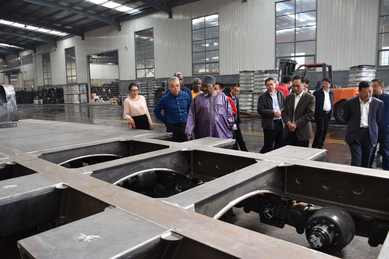 其中州长对我公司的低平板半挂车非常的有兴趣,仔细的询问了杨嘉低平板半挂车的配置,技术,载重等事宜,当场达成了初步采购意向。
