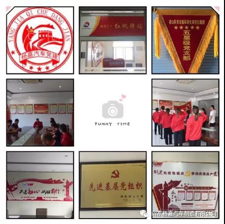 杨嘉汽车党支部:杨嘉汽车党支部成立于2009年,党支部成立以来在梁山县、乡镇、工业园区党委的领导下,高度重视存量企业对经济的冲击,了解企业生产经 营的困难,提供优质服务,精准帮扶重点企业达产达效,推动我区经济发展。疫情防控期间,党员积极带头,争当模范先锋。杨嘉汽车党支部自成立以来先后多次获 得“先进基层党组织”、“五星级党支部”等荣誉红旗。“创建先进党组织,争当优秀共产党员,永远跟党走”是杨嘉汽车党支部核心精神,杨嘉人一定不忘初心, 砥砺前行!