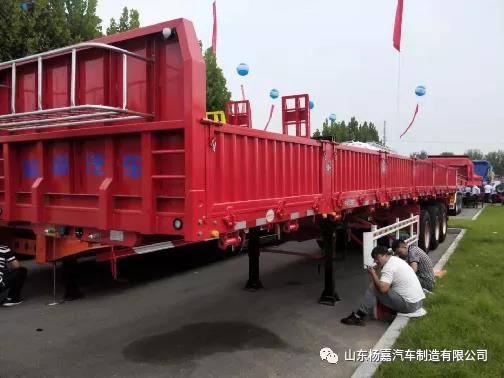 杨嘉汽车生产的液压可拆卸低平板半挂车具有以下特点:(1)装货方便,适用范围广;(2)承载能力强;(3)可扩展性;(4)重心低(比正常低平板 车辆货台低300~400 mm),稳定性好;(5)通过性能好(货台承载面可以根据需要通过液压装置调节其离地高度);(6)维修方便;(7)轴荷分配均匀,且制动性能优良。